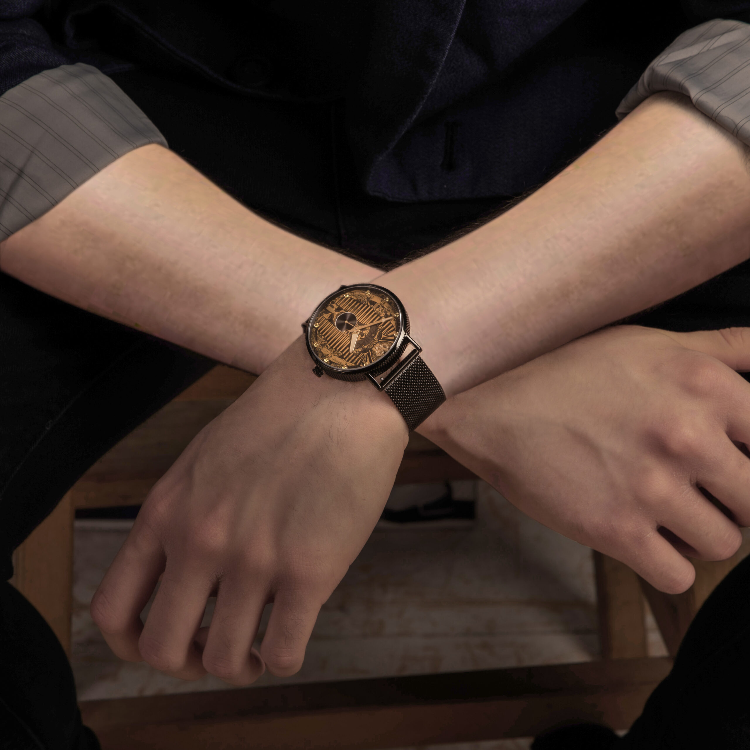 - CASING MATERIAL: Black 316L surgical grade stainless steel case with texture coin edges and engraved logo on case back