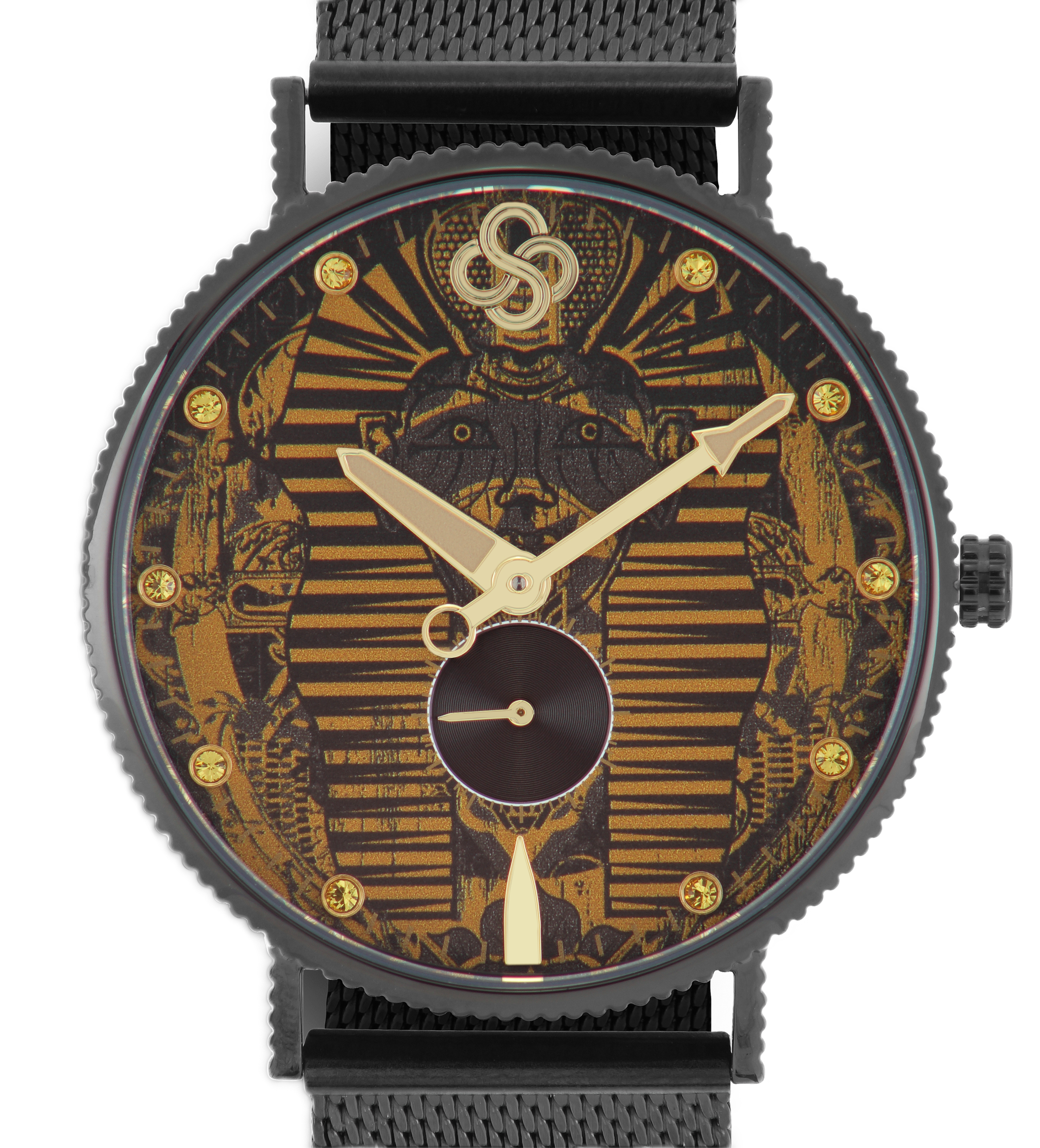 - DIAL: Pharaoh enamel 3d print dial with Champagne gold hourly gems