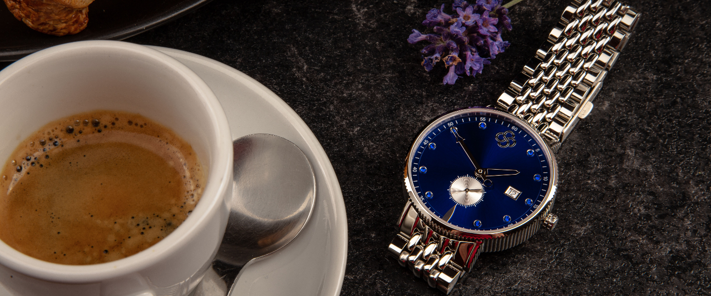 Presented to you as a combination of the most beautiful silver and gold colours, with the contrast of a black quilted leather strap, the Sundial watch is understated, yet highly luxurious – in the tradition of the Swiss timepieces. The gold hands sit elegantly against the silver background, while the second dial offers the precision you crave. A watch that truly takes you from the harsh glare of the sun, to the cool still of the moonlight.